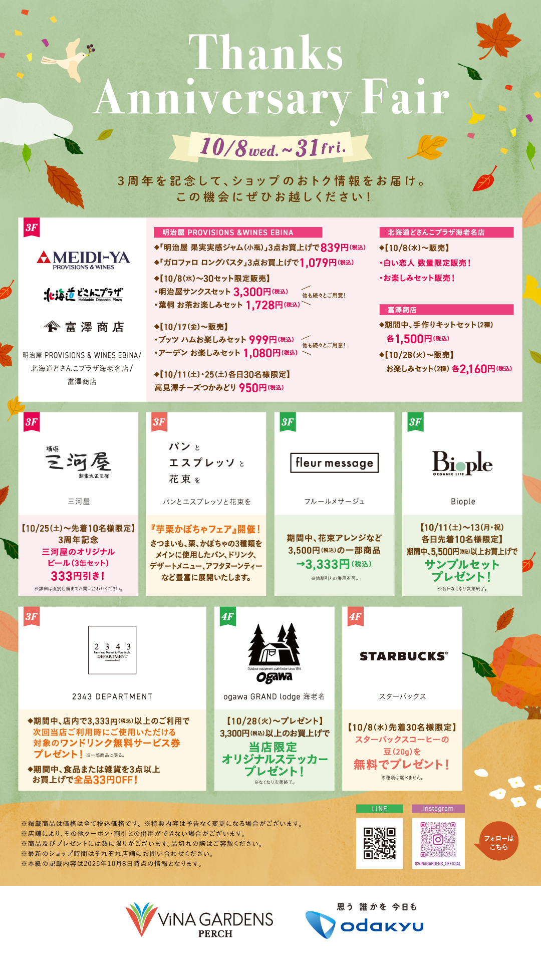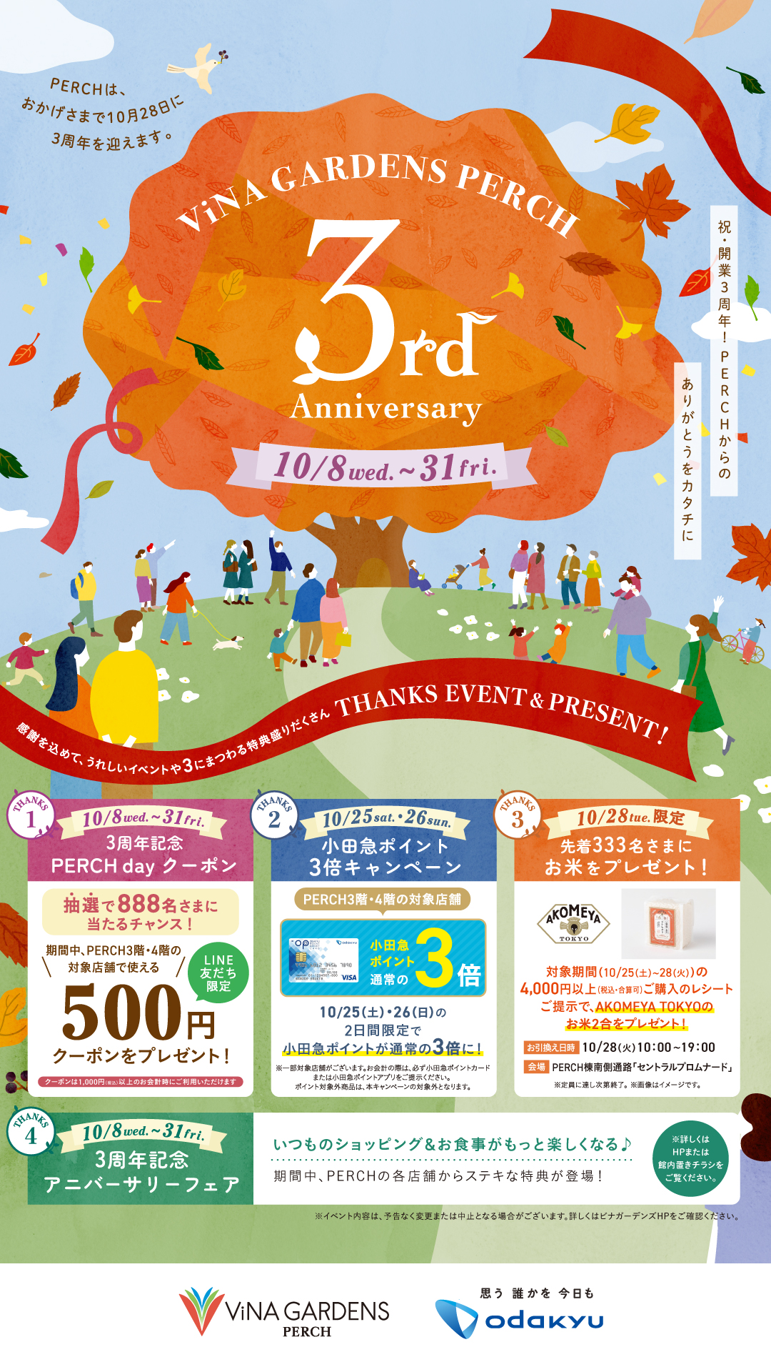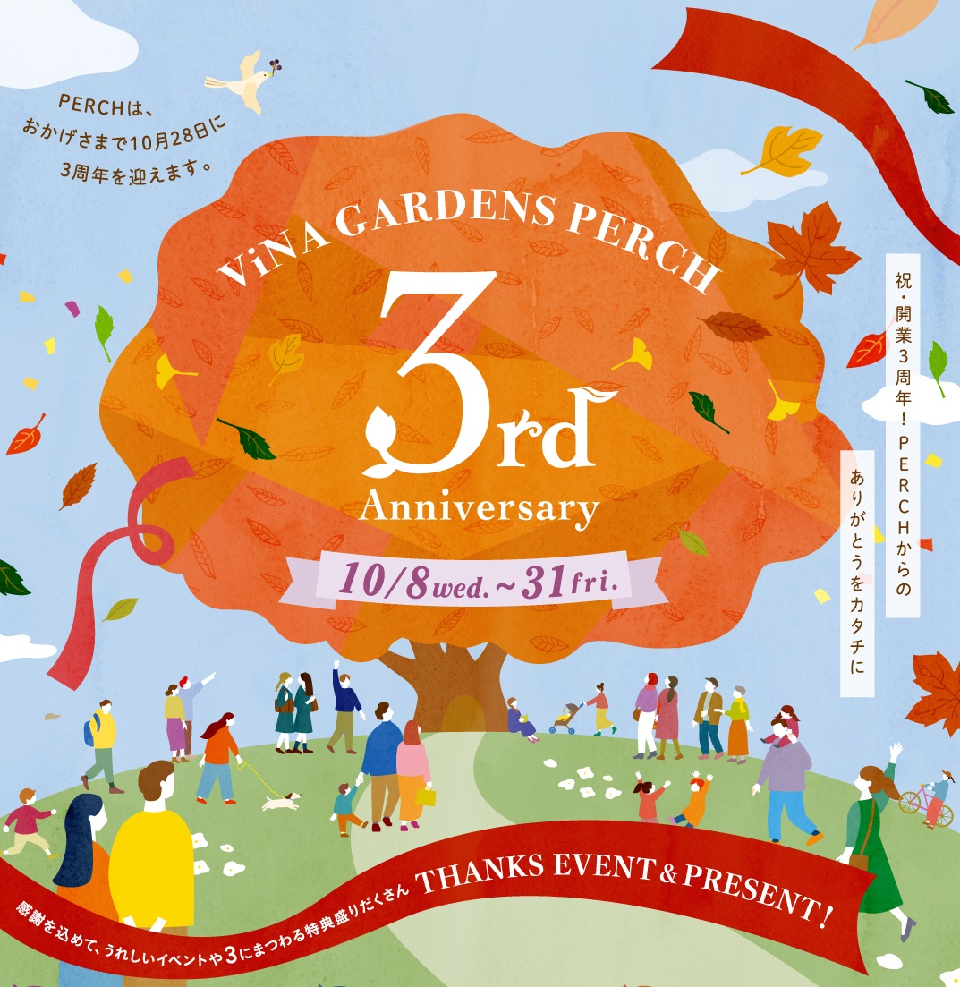 ViNAGARDENS PERCHはおかげさまで10月28日に開業3周年を迎えます。